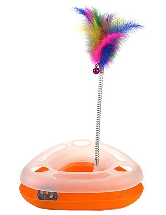 ЧК игрушка Трек-треугольник с пером на пружинке 25 см для кошек оранжевая
