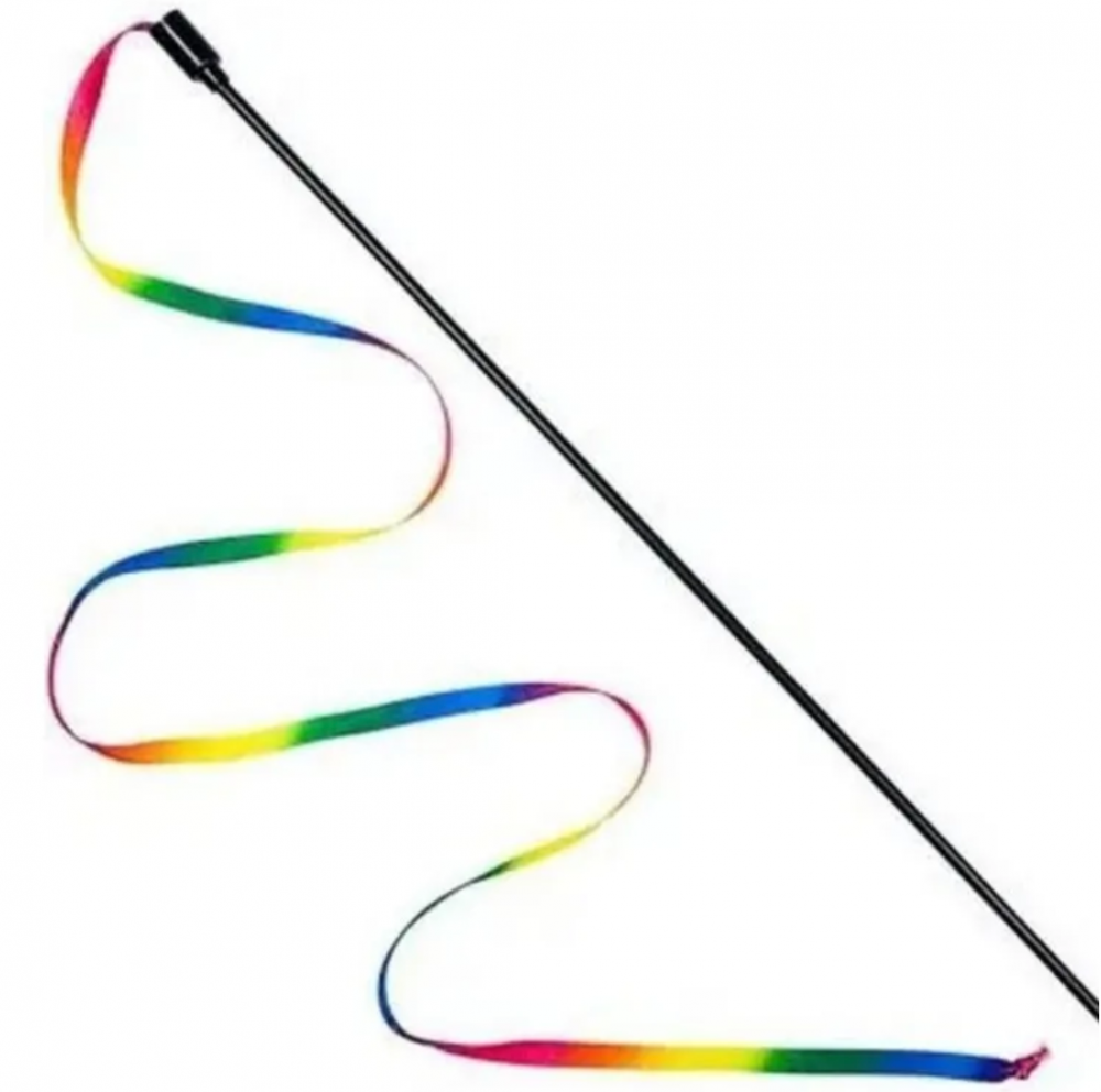 Представляем вашему вниманию дразнилку для кошек с лентой РАДУГА. На конце ленты прикреплен звенящий бубенчик. Подробнее