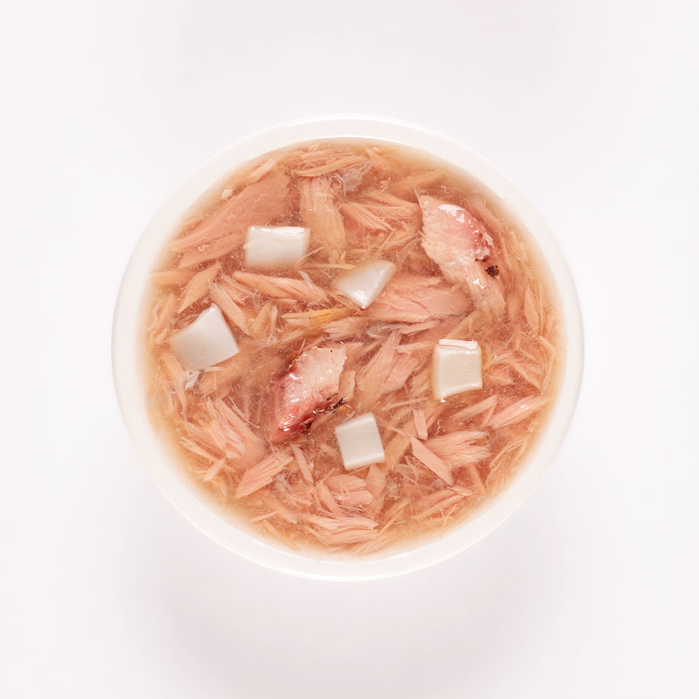 Состав: вода, тунец, кальмар, макрель, желирующая добавка, экстракт тунца, витамин Е.