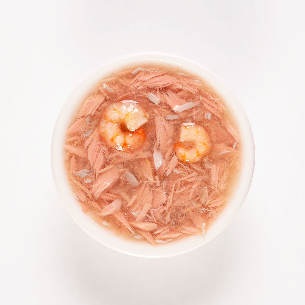 Густой аппетитный бульон с нежнейшим тунцом, креветками и крабом — превосходное угощение для кошек. Лакомство можно давать как отдельное блюдо или использовать как подливку для сухих кормов.
