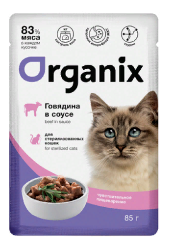 Паучи Органикс СТЕРИЛ деликат Говядина для кошек: СОУС 85 г