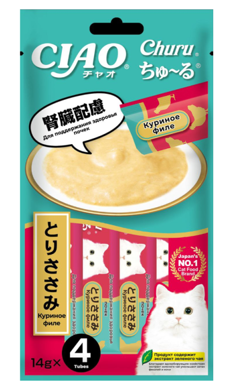 Лакомство INABA пюре д/кошек Churu Кур. филе д/поддержания здоровья почек 14*4шт Инаба