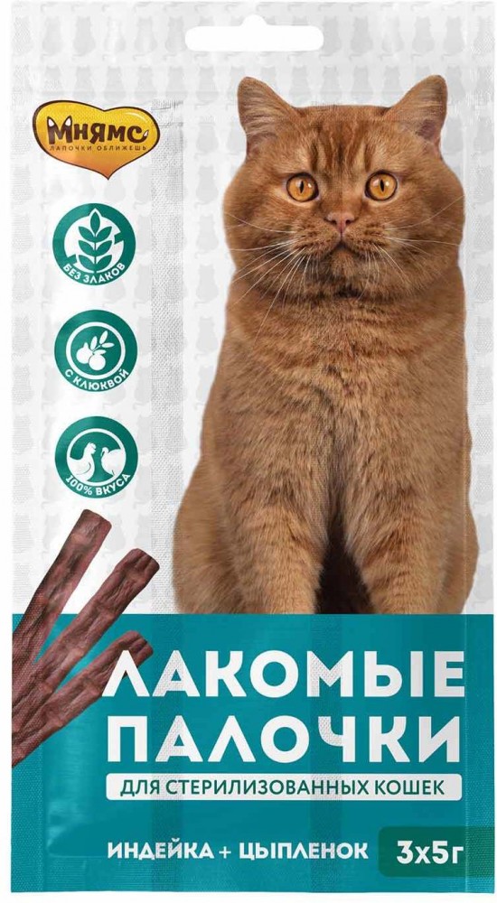 Лакомство для кошек Мнямс лакомые палочки для Стерилизованныхс цыпленком и индейкой 5г 3шт