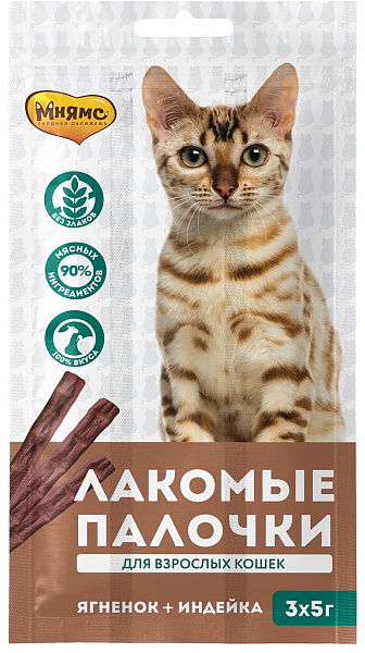 Лакомство для кошек Мнямс лакомые палочки с индейкой и ягненком 5г 3шт