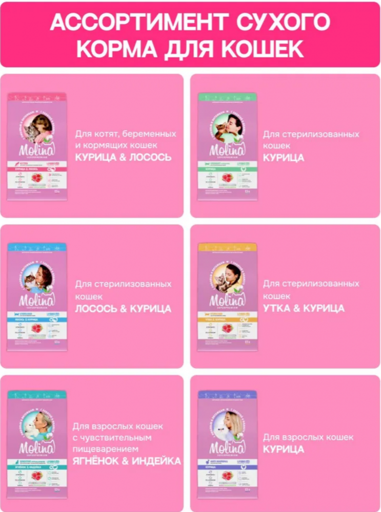 Корм МOLINA CAT с лососем и курицей для стерилизованных кошек