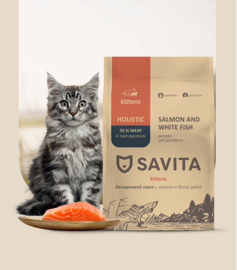 Польза природных ингредиентов и многолетний опыт, объединённые с эффективностью современных технологий. Полнорационные и сбалансированные корма Savita класса холистик содержат высокий процент мясных ингредиентов, необходимых витаминов и минералов, без добавления зерновых культур в составе. Надолго обеспечивают котенка необходимой энергией для правильного роста и развития. Каждый ингредиент тщательно подобран в соответствии с природными потребностями питомца и является важным компонентом в рецептуре корма, минимизируя риск возникновения аллергических реакций. Преимущества корма: беззерновая формула; высокий процент мяса и мясных ингредиентов; корма изготовлены из натурального сырья по стандарту качества human grade, не содержат ГМО, сои, ароматизаторов, искусственных консервантов и красителей; составы сухих кормов включают пребиотики, необходимые для здорового пищеварения питомца; овощи, фрукты, ягоды и травы в составах являются источниками антиоксидантов, витаминов и минералов. Размер гранул: 4,5-5 мм Подробнее
