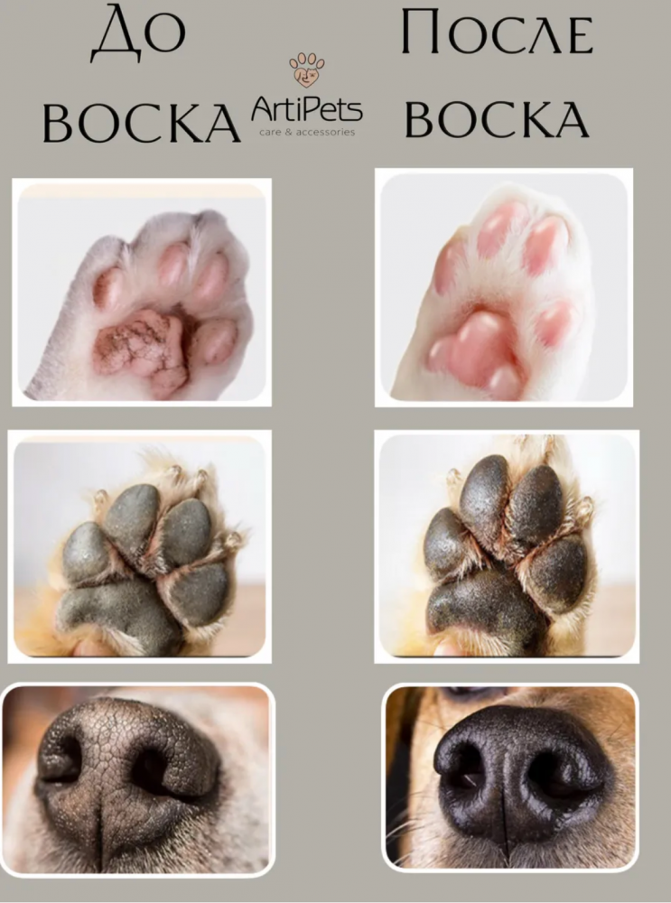 Натуральный воск для лап и носа - забота о вашем питомце! Подарите своим любимцам комфорт и защиту с нашим натуральным воском для лап и носа! Этот удобный стик создан специально для восстановления лап собак и кошек. Преимущества нашего воска: Питание и увлажнение: Насыщает кожу лап необходимыми микроэлементами, устраняет сухость и шелушение. Защита лап: Создает надежный барьер от агрессивного воздействия окружающей среды, включая реагенты. От трещин: эта мазь способствует заживлению и предотвращает появление новых трещин на подушечках лап. Натуральный состав: воск бальзам для лап безопасен для питомцев, не вызывает аллергии. Наш воск – это не просто защита, это полноценный уход за лапами вашего питомца. Используйте его как масло или вазелин для лап собак и кошек. Подарите своим любимцам здоровые и ухоженные лапки! Идеальное решение от сухости и шелушения, а также надежная защита лап в любое время года. Подробнее