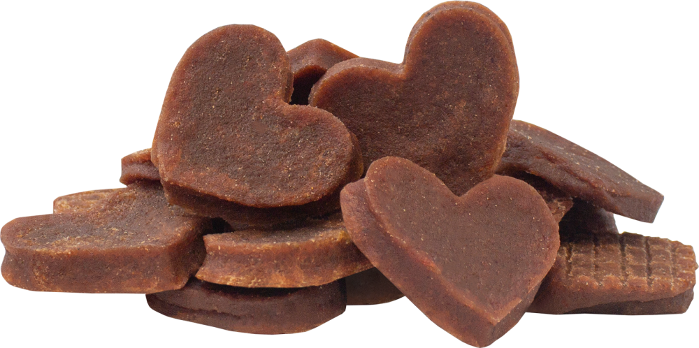 Лакомство для собак из лосося серии «Деревенские лакомства - Уход за шерстью» в виде аппетитных «сердечек». Идеальный вариант для поощрения и дрессировки. Эти натуральные лакомства для собак созданы для заботы о коже и шерсти животных.