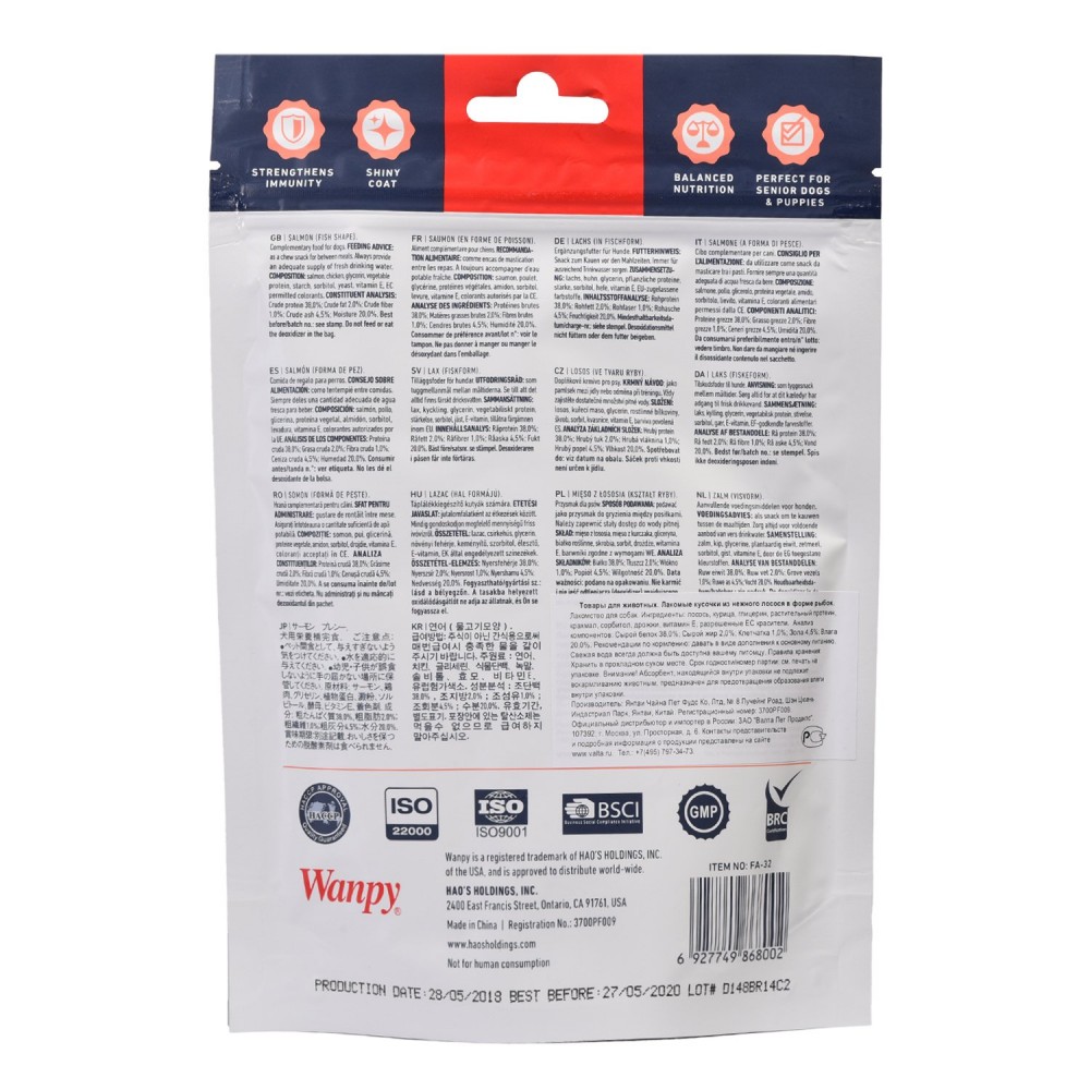 Лакомство для собак Wanpy Dog лакомые кусочки из нежного лосося в форме рыбок 100 г