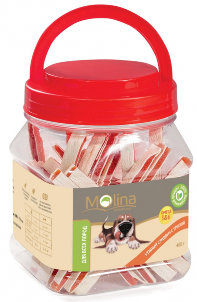 Molina лакомство для собак "Утиный сэндвич с треской", 400 г