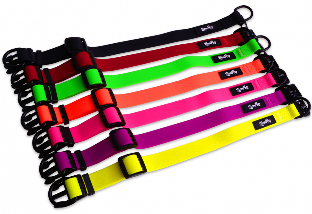 Ошейники из биотана LionPets (высокотехнологичного материала, изготовленного из нейлона и термопластичного полиуретана) Биотан имеет ряд преимуществ по сравнению с традиционными материалами, использующимися для изготовления амуниции для собак, не впитывает влагу, грязь, запахи (не тяжелеет в воде). Легко моется под струей воды без использования каких-либо моющих средств и не требует просушки и специального ухода Соберите комплект ошейник с поводком. Подробнее