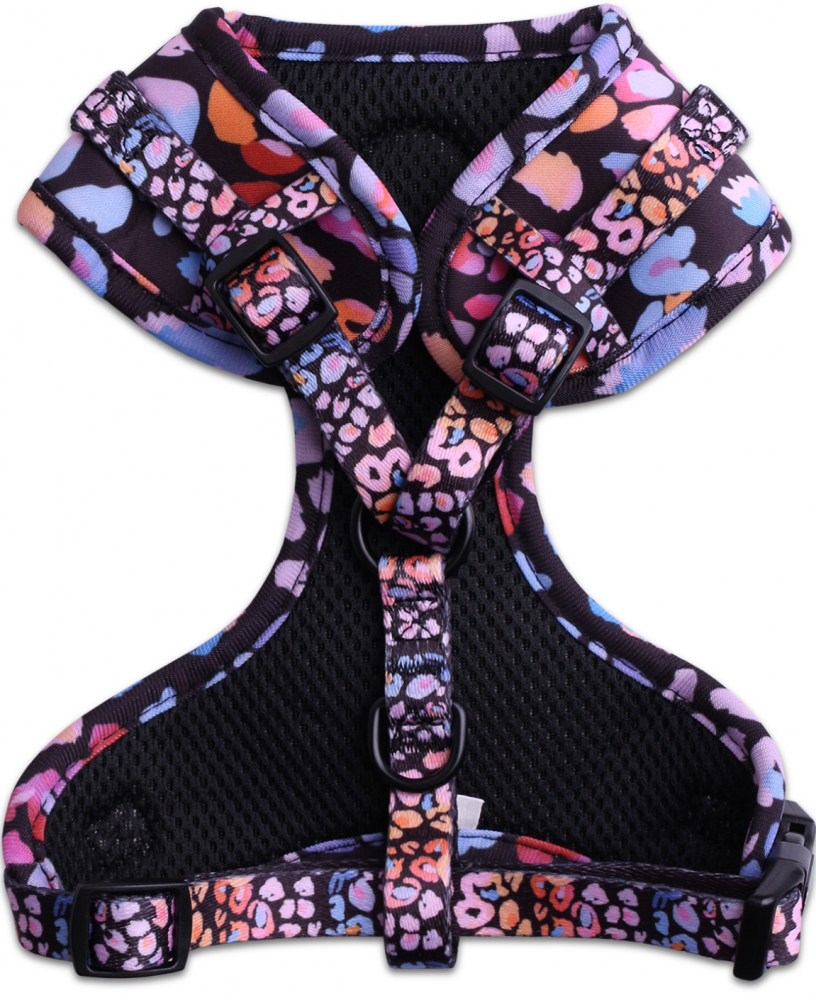 Яркая шлейка для собак, предназначена для безопасного и комфортного выгуливания питомца, она может быть использована во время прогулок как альтернатива ошейнику. Размер легко регулируется с помощью защелок. Соберите комплект шлейка с поводком с аналогичным принтом.