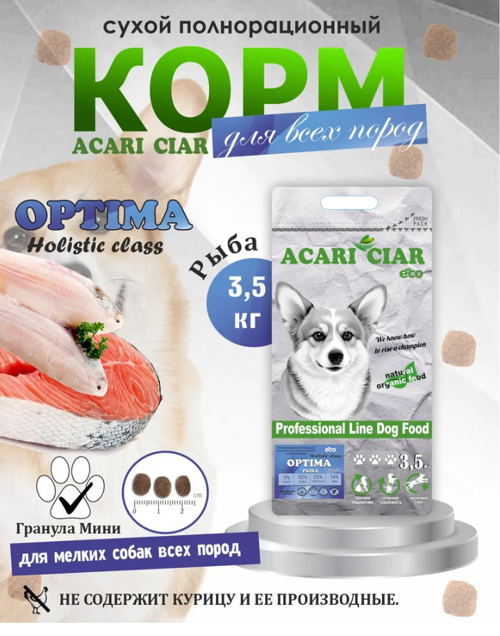 Корм Акари Киар ФИШ Оптима Мини холистик рыба для собак