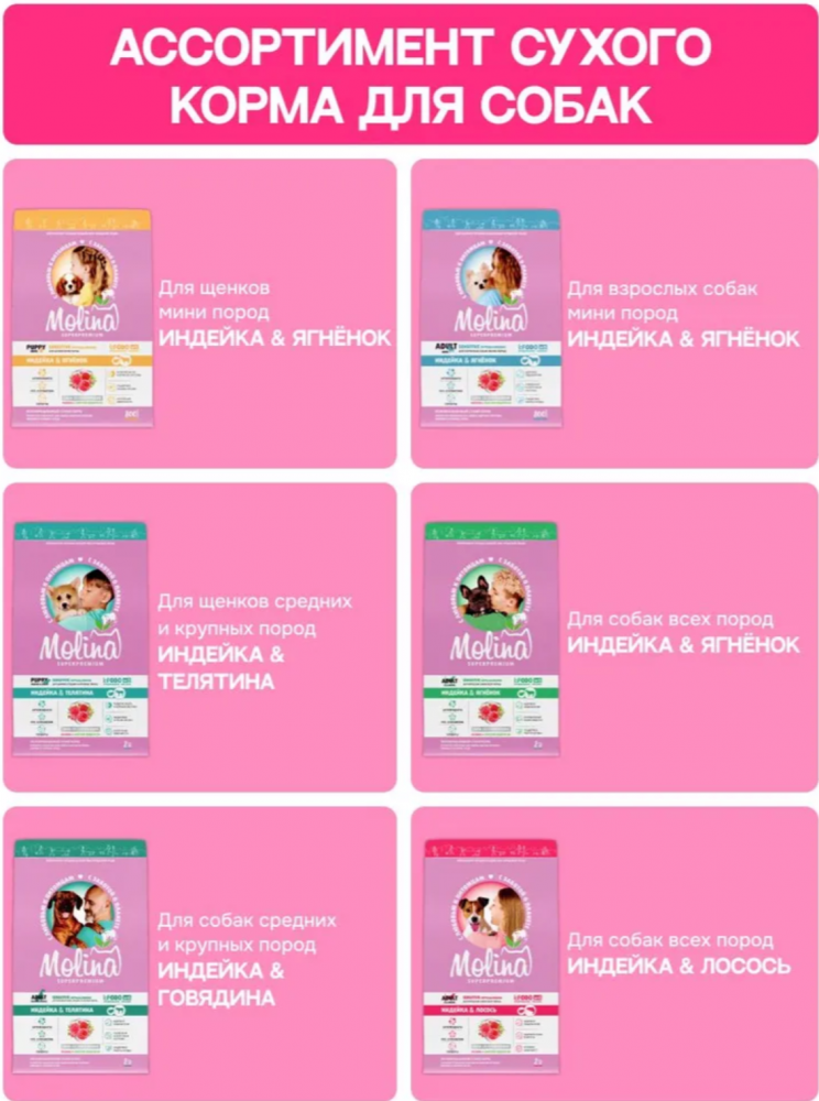 Корм МOLINA DOG МИНИ с индейкой и ягненком для собак мелких пород