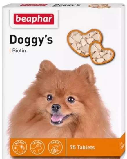 Беафар витамины для собак Doggys + Биотин с биотином "сердечки" рекомендованы ветеринарными врачами для домашних питомцев, требующих особого ухода за шерстным покровом. Благодаря входящей в состав витаминно-минеральной добавки повышенного содержания биотина, владелец может обеспечить дополнительный уход за своей собакой. Длительные клинические исследования показали, что биотин незаменим для роста густой, роскошной и блестящей шерсти. Его содержание в классическом рационе собак недостаточно, а низкое количество данного соединения в корме приводит не только к истончению шерстного покрова, но и к отсутствию блеска и ухудшению качества волоса. Ежедневно применяя витамины беафар для собак Doggys + Биотин с биотином "сердечки" можно восполнить недостающее количество биотина и стимулировать рост шерсти даже у истощенных и ослабленных питомцев. Опытные заводчики используют данный комплекс для восстановления шерсти у сук после беременности и лактации, а также для улучшения внешнего вида у животных перед выставками и соревнованиями. Одна упаковка содержит 75 таблеток, при условии, что суточная дозировка составляет от 3 до 6 таблеток в сутки в зависимости от массы и состояния здоровья питомца. Препарат особенно показан животным, относящимся к длинношерстным породам Подробнее