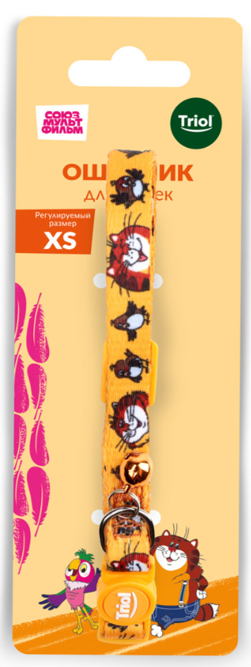 Triol СОЮЗМУЛЬТФИЛЬМ Ошейник нейлоновый с колокольчиком "Кот и воробьи" XS, оранжевый, 10*180-270мм