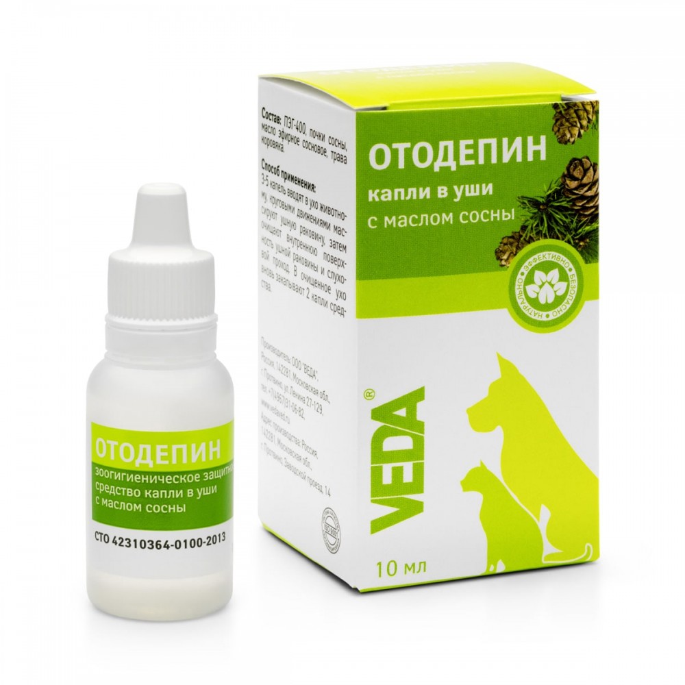 Гигиенические ушные капли отодепин содержат экстракт почек сосны и цветков коровяка, эфирное сосновое масло и вспомогательные компоненты. По внешнему виду представляют собой слегка опалесцирующую маслянистую жидкость от бесцветного до светло-желтого цвета с хвойным запахом. Расфасовывают в полимерные флаконы-капельницы по 10 мл. ФАРМАКОЛОГИЧЕСКИЕ СВОЙСТВА Натуральные растительные компоненты (комплекс терпенойдов эфирного масла сосны и сапонинов экстракта коровяка) гигиенических капель обладают противомикробными, противовоспалительными и ранозаживляющими свойствами, способствуют регенерации клеток, ускоряют заживление мелких травм, гематом. Гигиенические ушные капли отодепин относятся к малоопасным веществам и в рекомендуемых дозах не оказывает местнораздражающего, резорбтивно-токсического, сенсибилизирующего и аллергизирующего действия. Для гигиенической обработки ушной раковины и наружного слухового прохода собак и кошек. Профилактика инфекционных и воспалительных заболеваний уха. Лечение мелких травм и ушибов. Подробнее