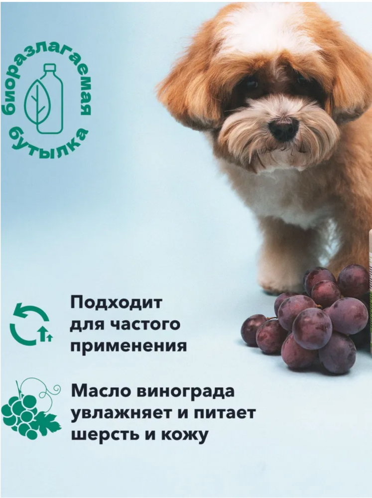 Парфюм для животных с изысканным ароматом белого винограда создан на основе безопасных компонентов для применения в груминг салонах и дома. Масло винограда увлажняет и питает шерсть и кожу. Стойкий и насыщенный аромат нейтрализует неприятные запахи на шерсти и коже. Шлейф остается на шерсти в среднем 3-5 дней. Подходит для ежедневного применения. Подходит для животных с 3-х месяцев. В составе безопасные спирты и отдушки из Франции (Floressence, Givaudan). Ноты: белый виноград, инжир. Состав (INCI): Aqua, Propyl Alcohol, Polysorbate 20, Methoxyisopropanol, Perfume, Opuntia Ficus Indica Подробнее