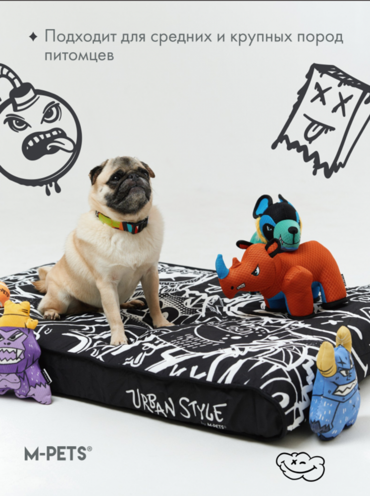 Матрас-лежанка Mpets URBANSTYLE черно-белый L 95x65 x9 см