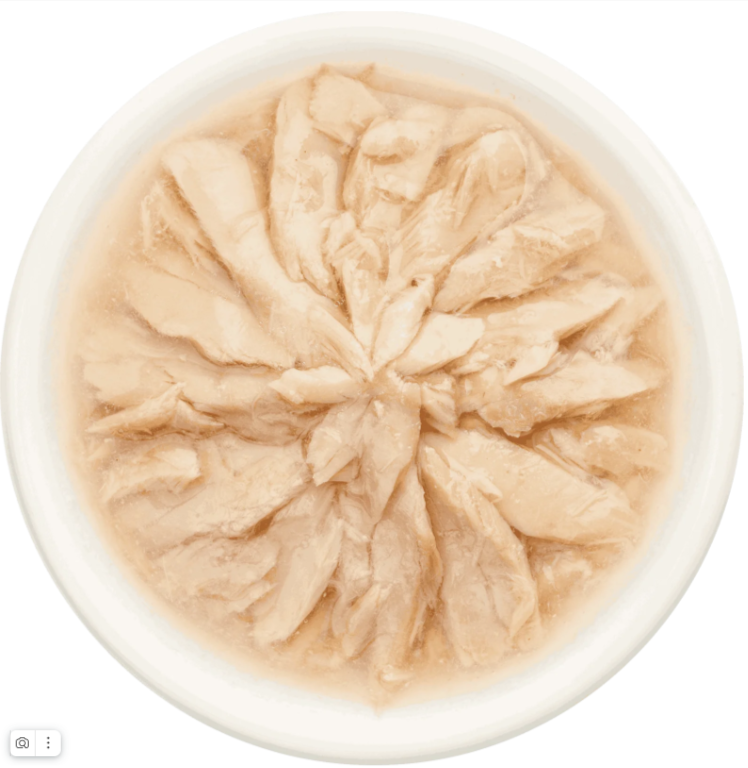 Состав: тунец 58 %, бульон из тунца 40 %, натуральная желирующая добавка.nПищевые добавки: пивные дрожжи (источник пребиотика МОС), пребиотик ФОС, рыбий жир (анчоус), витамин Е, таурин, минералы.nПищевая ценность, %: протеин — 10; жир — 0,8; клетчатка — 1; зола — 1,5; влажность — 89;nЭнергетическая ценность на 100 г — 45 ккал.