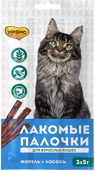 Лакомство для кошек Мнямс лакомые палочки с лососем и форелью 5г 3шт