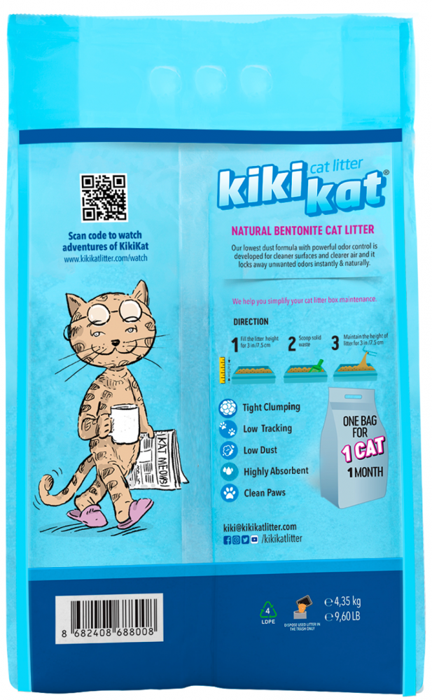 Бентонитовый наполнитель для кошачьего туалета "KikiKat" супер-белый комкующийся 5 л. Супербелый- бентонит. Бентонит имеет идеальную структуру слипания. Песок наполнителя мелкий и крупнозернистый. Это один из наиболее предпочтительных наполнителей для кошек, не разносится на лапках, остается в лотке. Органолептические свойства мочи хорошо видны в белом наполнители. Любые изменения в мочеполовой системе и желудочно-кишечном тракте покажут владельцу о наличие или возникновении проблем у питомца. Активные компоненты, введенные в натуральный бентонит, устраняют неприятные запахи в лотке и дарят ощущение чистоты и истинной гармонии с природой. Подробнее