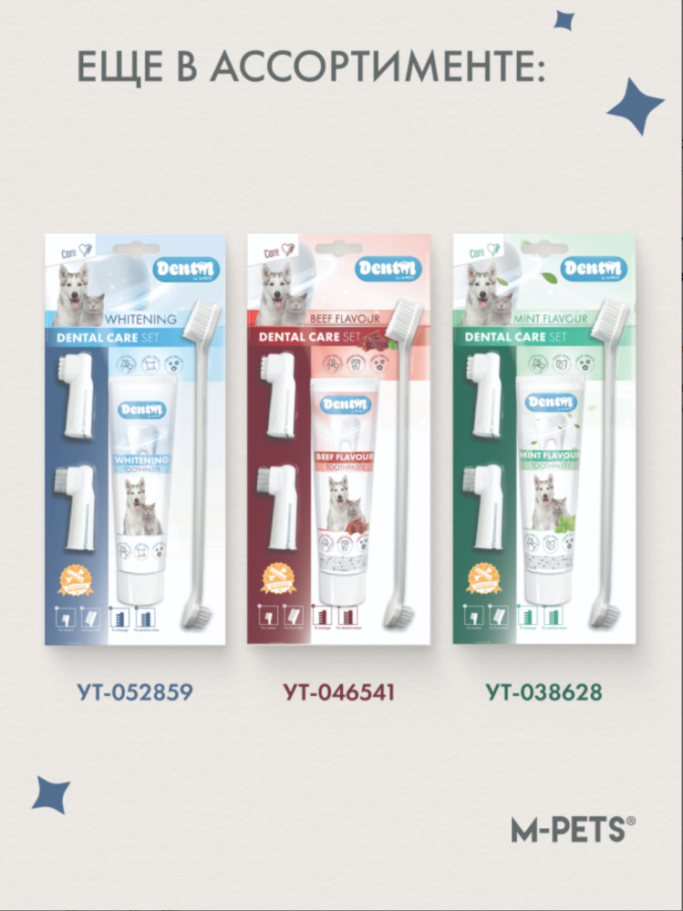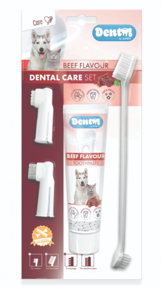 M-PETS Набор для ухода за зубами собак (паста 100 мл, щётка, напальчники) со вкусом говядины