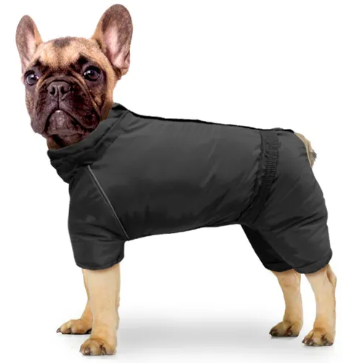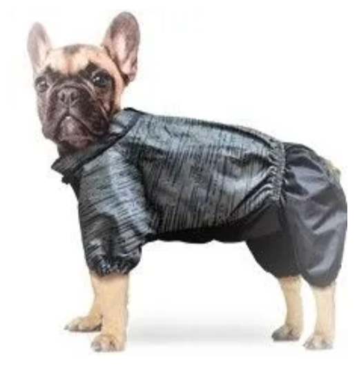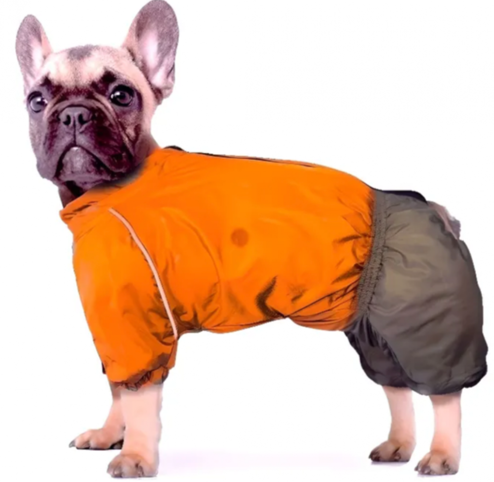 Дождевик для французского бульдога,унисекс Материал :100 % полиэстер Внутри: шелковый подклад с утеплителем Застежка : Молния на спине Светоотражающий кант Подробнее